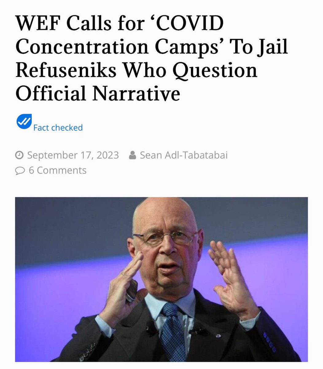 The World Economic Forum (WEF) has urged governments to build COVID concentration camps worldwide to jail citizens who refuse to go along with the official narrative. This is a declaration of war! https://thepeoplesvoice.tv/wef-calls-for-covid-concentration-camps-to-jail-refuseniks-who-question-official-narrative/