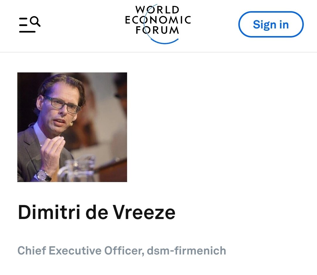 I thought I'd look into Bovaer, the food additive that Canada has just approved to reduce methane from cows. Naturally, I checked to see who owns it, which led me to DSM-Firmenich, a company based out of Switzerland. Then I looked into the CEO, Dimitri de Vreeze, and guess what??? Our good friend Dimitri is an agenda contributor for the World Economic Forum.