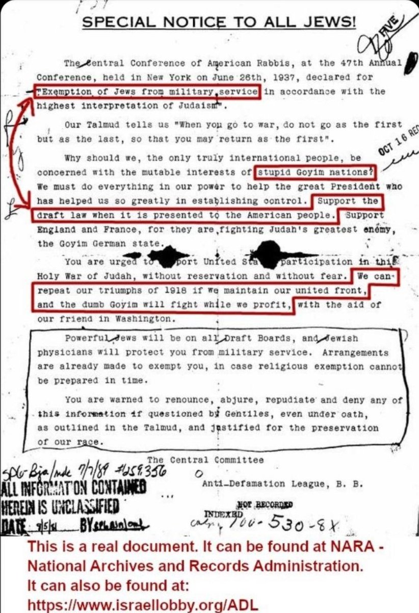 I'll just leave this here. "The dumb goyim will fight while we profit." The full docs can be found here. 👇 https://www.israellobby.org/ADL/1199215-000%20---%20100-HQ-530%20---%20Section%202.PDF https://t.co/HMQj5ULLQ1