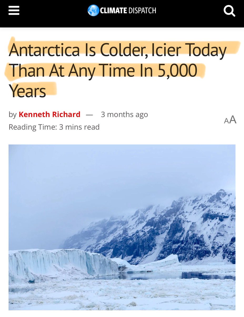 NET ZERO -Good morning ‘planet is boiling” people I have great news - Antarctica is Colder & Icier than at any time in the last I5,000 Years Not just West Antarctica, but most of the continent has cooled by more than 1°C in the 21st century. Awkward for the narrative 🤡 https://t.co/oQ9gDVAhfU