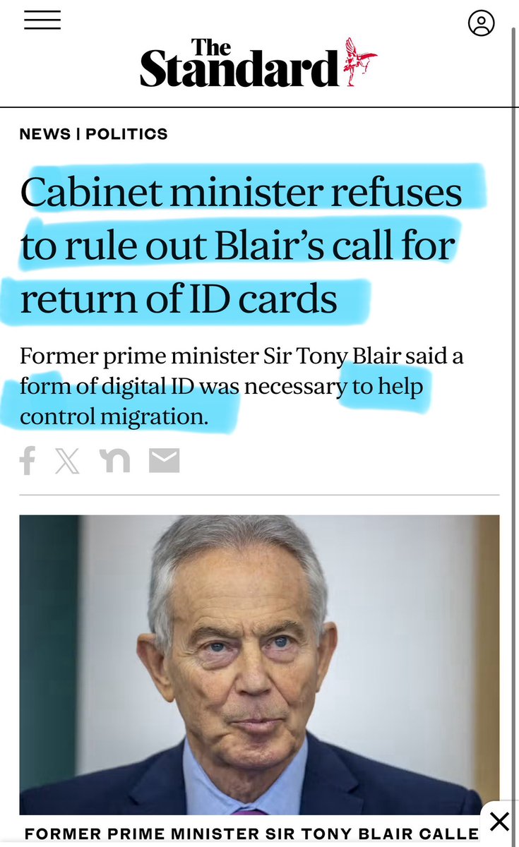 🚨DIGITAL ID - To control illegal migration. Business Secretary Jonathan Reynolds said Yvette Cooper would look at “all sources of advice” Whilst Tony Blair’s advice: “We need a plan to control immigration. If we don’t have rules, we get prejudices” See how fast that was? https://t.co/kmAlCmBU3p