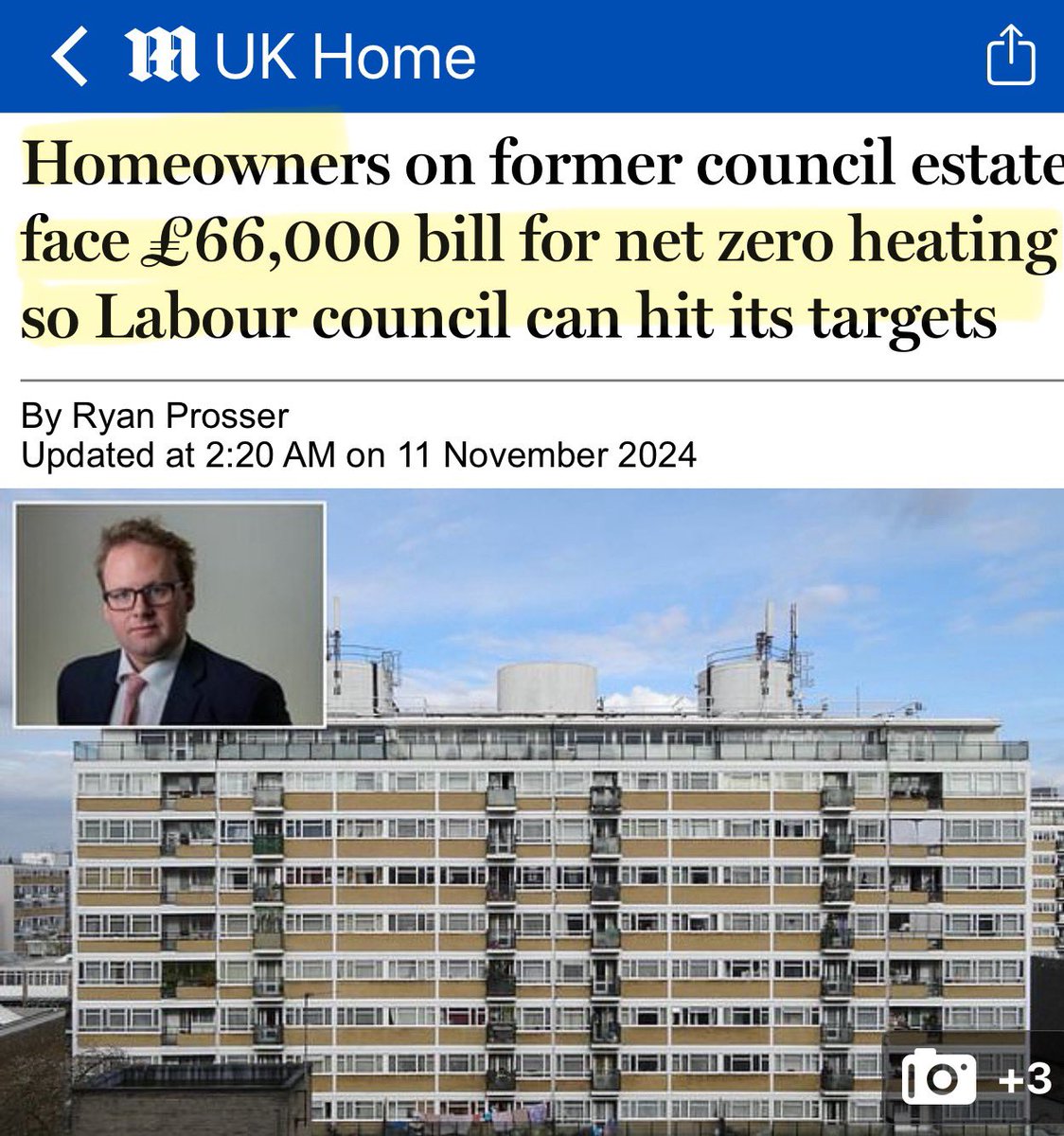 🤡 NET ZERO - And here it comes! Local councils can’t afford to hit their own fake net zero targets! So they are going to force you to do it instead. This block of apartments has been told they need a £185 million scheme. Costing residents £40 - £66,000 each OR they won’t have heating. Apparently it will be worth it in the end 🤡