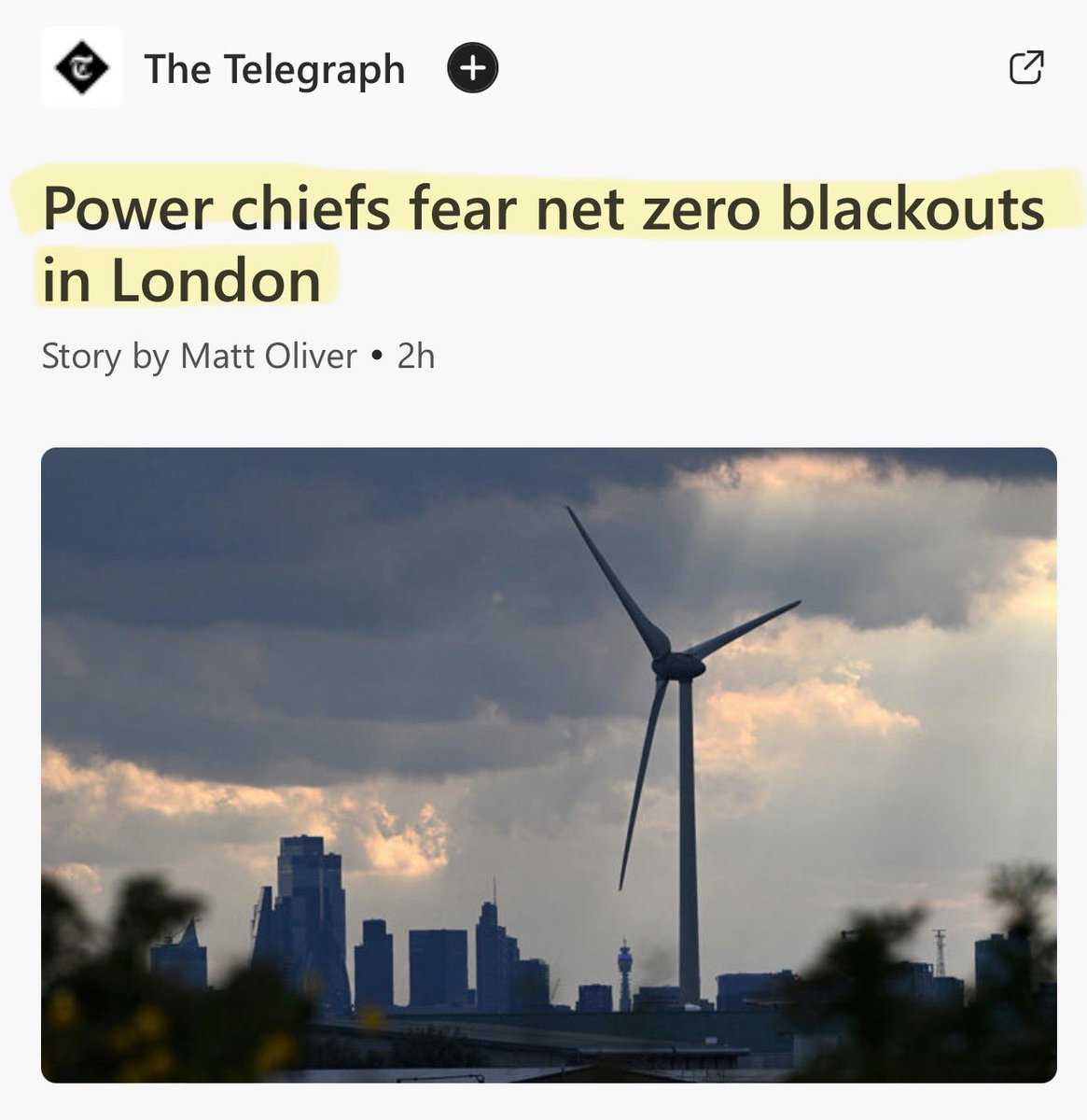ENERGY - Blackouts predicted in London. The looming threat is due to the switch to less predictable wind and solar power” Oh and also The National Grid needs £58 billion in upgrades to meet net zero targets. Suck it up tax payers. You voted for it … didn’t you? 🤡 https://t.co/T1fVfiUdpI
