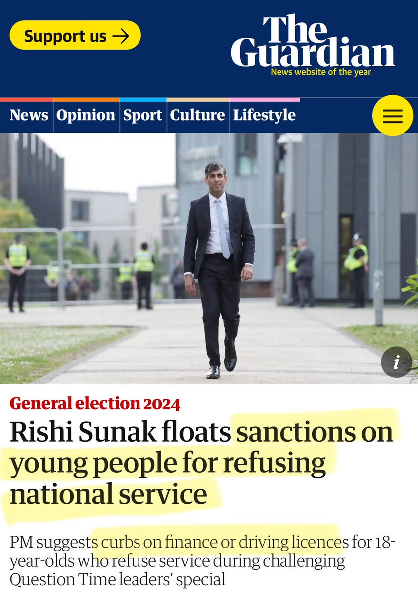 ELECTION- They think it’s all over … well it is now! Sunak threatens Sanctions for young people trying to avoid the national ‘draft’ But look at what those sanctions are … finances and driving licenses. Impossible, unless Digital ID is connected to bank accounts and all government services, where all Citizen behaviour can be controlled, monitored and judged. Oh …
