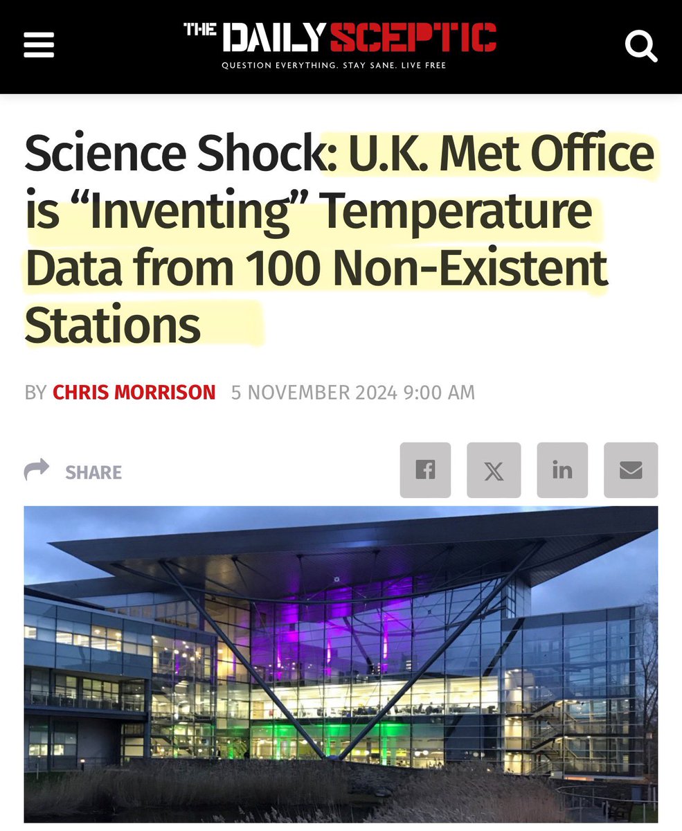 CLIMATE - Is the Met office is making up data to ‘prove’ it’s claims? A freedom of Information requests to the Met Office & investigating individual stations, shows that 103 stations out of 302 sites supplying temperature averages ….DO NOT EVEN EXIST‼️ https://t.co/RJq0aWtsOE