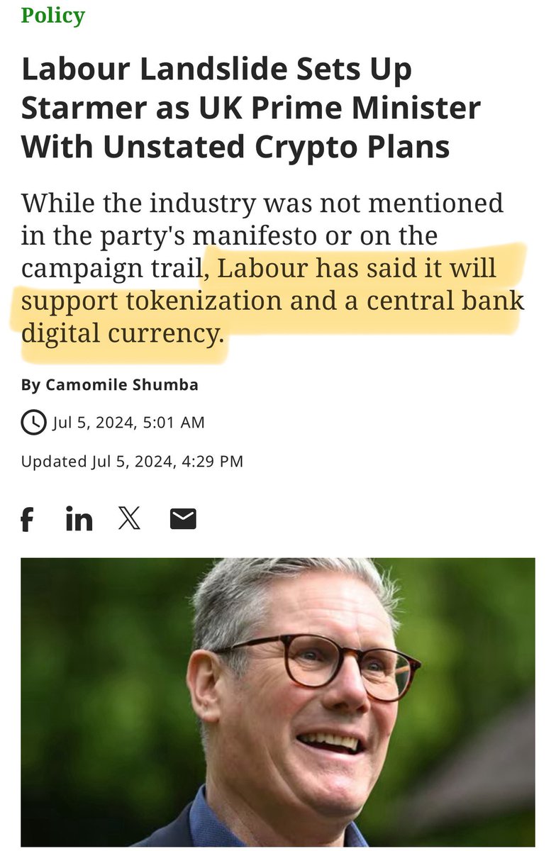 CBDC - The new Labour government is committed to Central Bank Digital Currency. To do that they need Digital ID. It’s not like you weren’t warned. https://t.co/JHEyLdo4fF