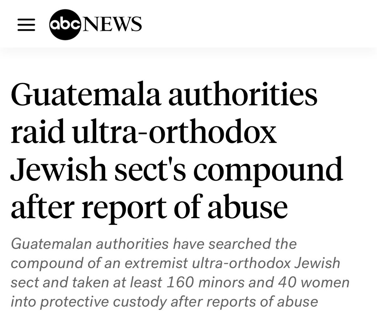JUST IN: Guatemalan authorities raid ultra-Orthodox Jewish sect, taking 160 minors and 40 women into protective custody after reports of abuse.