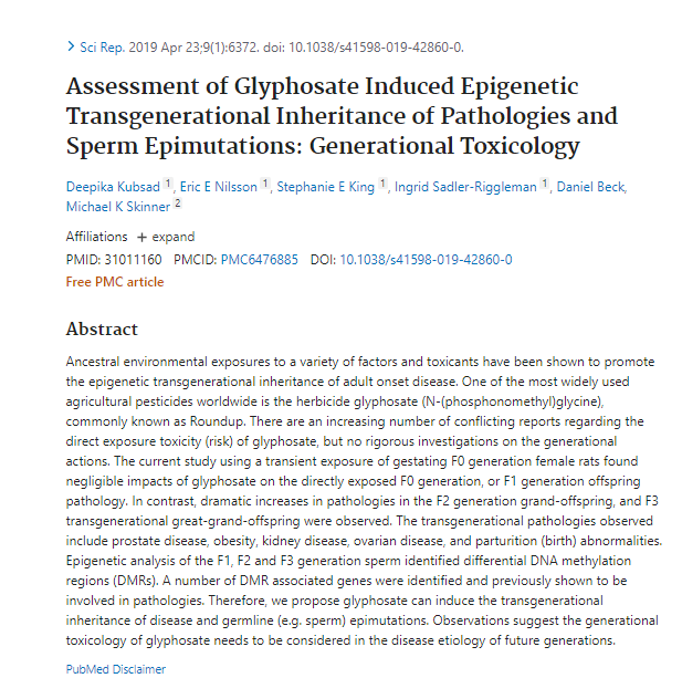 Glyphosate is a trans-generational obesogen. If you expose a mother rat to glyphosate, but not her offspring, the offspring three or four generations down the line will be fatter. "Generational toxicity" is a factor that is never considered in safety assessments for chemicals. https://t.co/lrdcHaGRsH