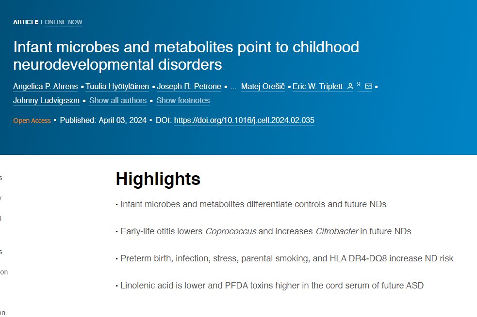 AUTISM AND GUT FLORA. Yet another study has linked disturbed gut flora in early life to later onset of autism and ADHD. This one is a large-scale study of over 16,000 children born in Sweden in the late 90s. 👇 https://t.co/PK3BwquSnn