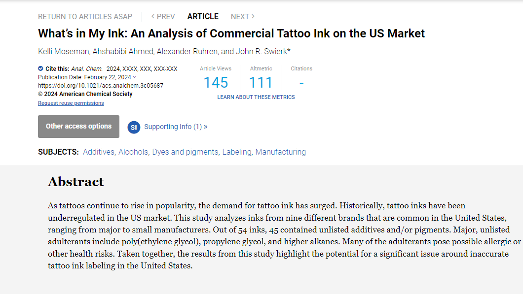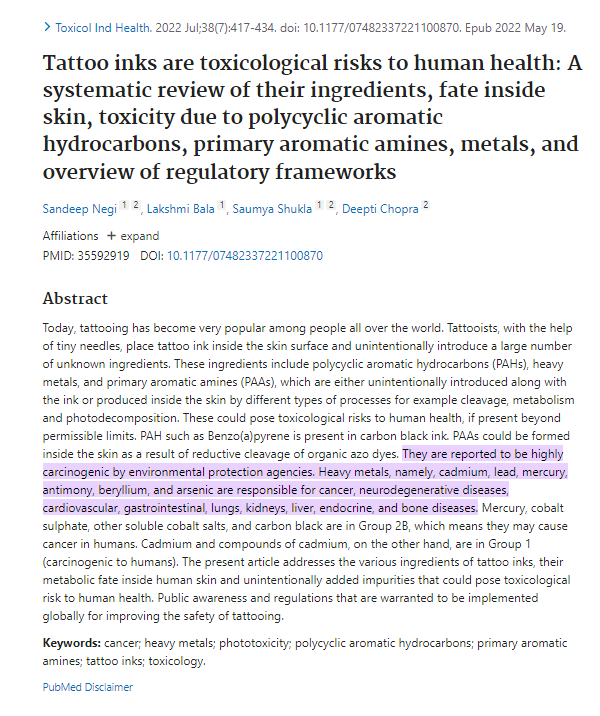 Previous recent studies have shown tattoo inks to be full heavy metals, polycyclic aromatic hydrocarbons, aromatic amines and other toxic compounds. https://t.co/ucW3PNPpEs