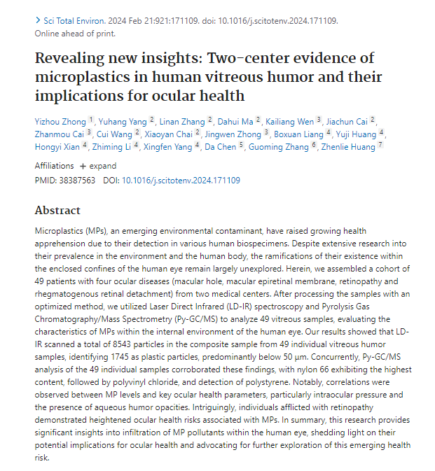 MICROPLASTICS IN YOUR EYEBALLS. Yes, there are microplastics in your eyeballs, and the more you have, the more likely you'll have sight problems.👇