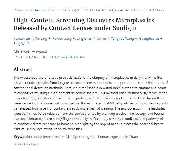 This study showed that a pair of reusable contact lenses could release almost 91,000 plastic particles in a year of wearing them. That's 91,000 plastic particles in your eyes.