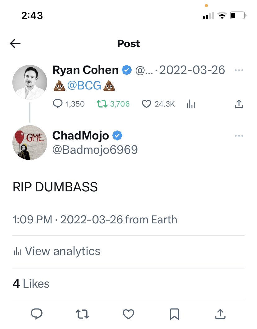 Maybe a DM I'm sorry I confirmed a complete lie and my 1.4K views found their way into your DM's you leave open to give free DD and answer retail investors ?'s