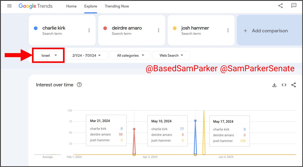 3/ See for yourself: https://trends.google.com/trends/explore?date=2024-02-01%202024-07-31&geo=IL&q=charlie%20kirk,deirdre%20amaro,josh%20hammer&hl=en