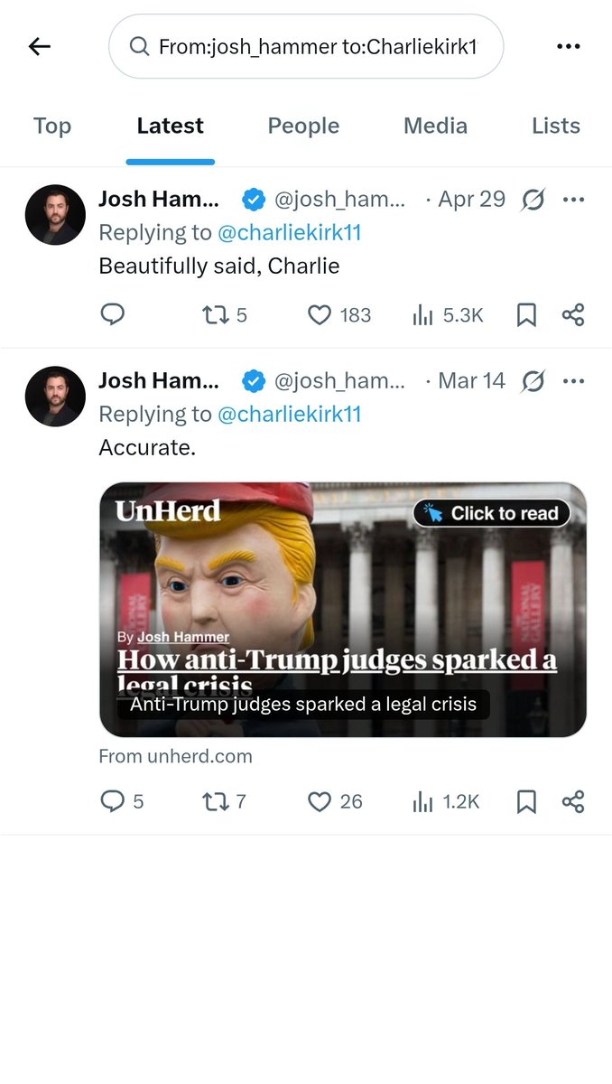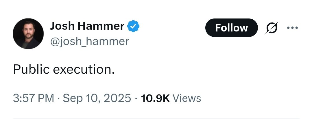 Anyone else raising their eyebrows at this Charlie Kirk/Josh Hammer timeline? ▪️A year and a half ago, Josh Hammer begins to be in regular contact with Charlie Kirk ▪️May 2nd, Charlie writes a letter a pages-long letter to Netanyahu, essentially criticizing him. Later, Josh Hammer will reveal he knew about this letter, but remained silent about it, and in the meantime calling others like Candace Owens "liars" who referenced its existence. ▪️Over the past year, Charlie Kirk had been receiving numerous death threats to the point where he stepped up his security, per Erika Kirk. ▪️On July 13th, Josh Hammer expresses open and specific disgust at having to share the stage at TPUSA with Dave Smith ▪️Also July 13th, since April 2024, Hammer has been attacking Tucker Carlson, calling him the most dangerous antisemite in American history. Carlson made a notorious appearance at that same TPUSA event where Hammer was disgusted at sharing the stage with Dave Smith. How unhappy was Hammer over Charlie platforming both Smith & Carlson? Keep reading. ▪️On August 4-5, at a meeting in the Hamptons, Charlie Kirk gets into some heated discussions allegedly with Seth Dillon, Josh Hammer, and others over their perceptions of his insufficient support for israel, and specifically the platforming of Tucker Carlson. ▪️Also August 4-5, Charlie turns down $150 million from israel, offered by Netanyahu ▪️August 6th, Charlie Kirk goes on Megyn Kelly and complains about being "emotionally BLACKMAILED" over his choices regarding how he supports israel. ▪️In mid August, Charlie Kirk told multiple people he thought israel might try to kill him if he turned against them. This information made it to Harrison Smith, who posted it at the time. Charlie is not known to have disputed this. Others have confirmed he told multiple people this. ▪️On September 8th, Charlie posted a message in the group chat that he had no choice but to drop the pro-israel activism. Josh Hammer & I believe Rabbi Wolicki were part of this group chat. They both stayed silent about it. Hammer lied about Candace's claim about it that turned out to be true. ▪️On September 9th, Charlie had a mysterious Zoom call with Josh Hammer & Rabbi Wolicki, where they say they discussed Charlie's upcoming campus tour & debating with students. Even though it was scheduled to begin the next day, Hammer apparently didn't even know it was starting in Utah. Odd. Also on September 9th, Charlie texted people saying "they're going to kill me." We don't know if that was before or after the Zoom call. ▪️Also on September 9th, At dinner after the Zoom call, Erika Kirk & Charlie's "faith leader friend" both encouraged Charlie to increase his personal security by wearing a bulletproof vest or putting up bulletproof glass. What happened to escalate their worries that night? ▪️Also September 9th,after the Zoom call, Josh Hammer cryptically tweets "Based", QT'ing a random 12-year old tweet from Donald Trump calling for "public execution." ▪️September 10th, immediately after Charlie was assassinated, his close friend and associate at TPUSA, Andrew Kolvet, sent screenshots of the group chat from September 8th to the FBI. Why did Kolvet surmise that that particular chat from 2 days prior would be relevant in the immediate aftermath of the assassination? ▪️Also September 10th after the assassination, Josh Hammer again cryptically tweets "Public execution" without any context. ▪️For the entire month since Charlie's group text message on September 8th, Josh Hammer has remained silent about it while calling others "liars" for saying Charlie had changed his mind on israel. ▪️After the "Based" public execution tweet from the 9th resurfaced, the entire paid-off Hasbara shill army claimed he was referring to the murder of Iryna Zarutska. Of course, by their own admission, Hammer was out of contact for the jewish holiday and not using electronic devices, so there was no way for anyone to know this. Surprise! He showed up the next day confirming this was indeed the case. But both he and the Hasbara army are still ignoring his equally cryptic "Public execution" tweet from after the assassination on the 10th. ▪️Today, Hammer posts a screenshot revealing he didn't know where Charlie's tour would be starting the next day, but knew to warn him about "Antifa." As with his 2 "public execution" tweets, day that was a little on-the-nose, wouldn't you say? Just what the f*ck does Josh Hammer know? What's he still lying about? What lies did he tell Charlie? If I ran the FBI, I'd be so far up his business he'd be brushing his teeth with Preparation H. Parting Shot: For allegedly being so close, Josh Hammer and Charlie Kirk only ever had 3 interactions on the timeline—one of them being about assassination by Left-wing hysteria. What are the odds?