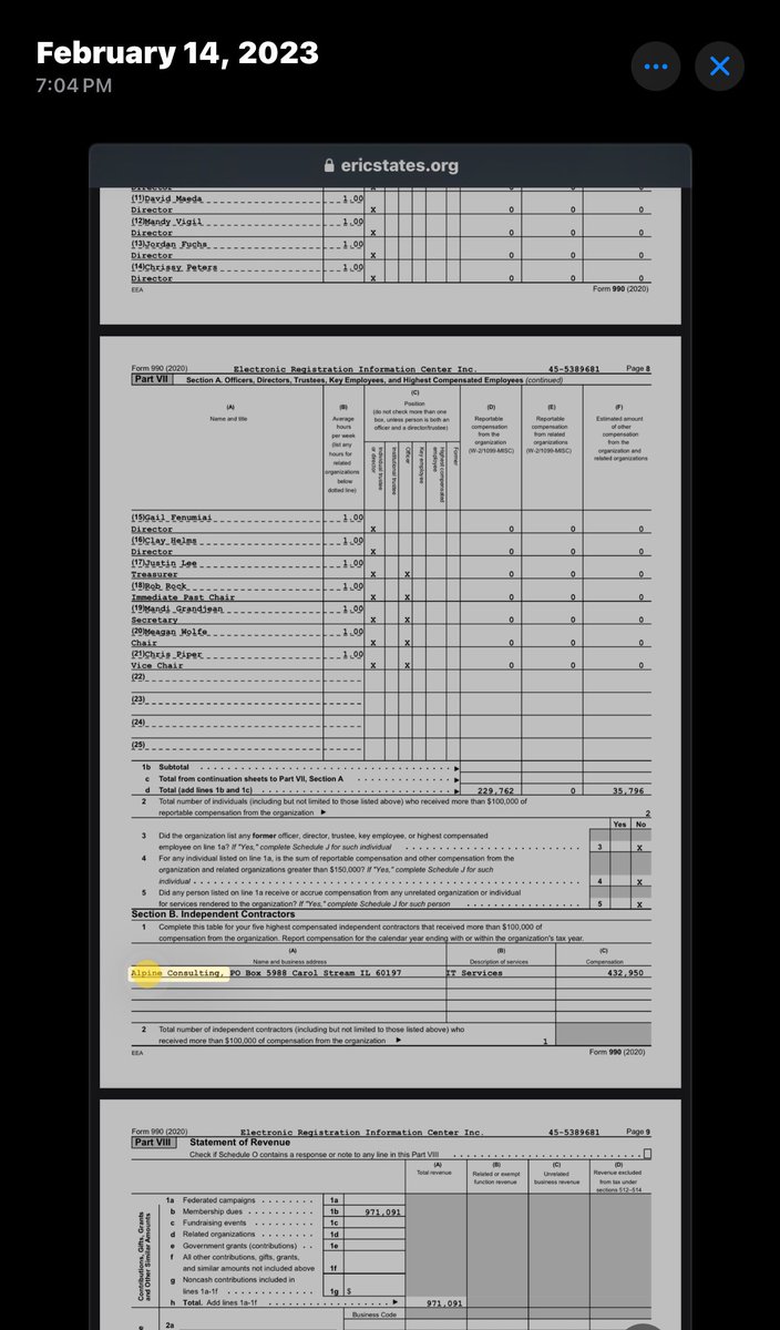 Here’s the ERIC/Alpine Consulting Partners LLC receipts. Potentially big stuff right here, sports fans. Real big.