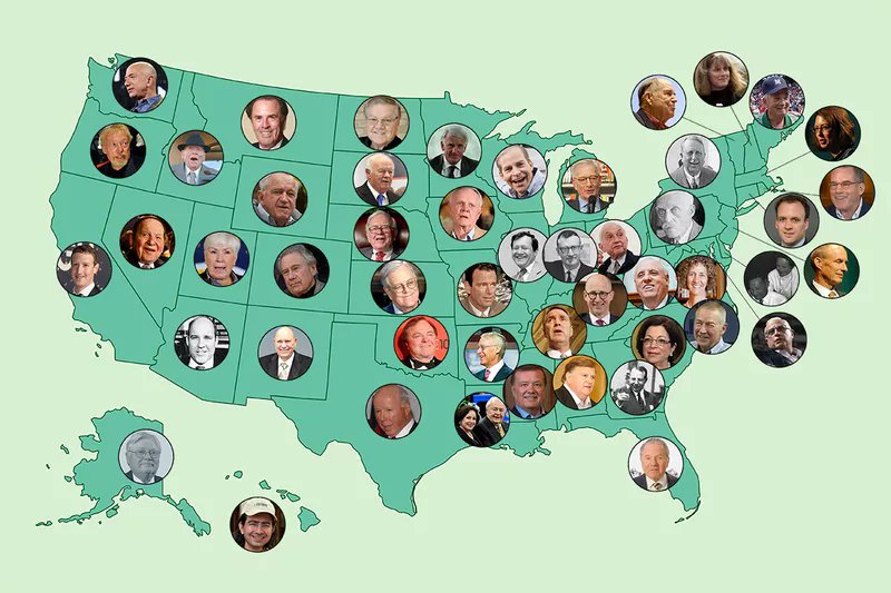 9. Here's a picture of the wealthiest person/family in each state. Together, these 50 people/families have as much or more political power probably than any 10s of millions of citizens. And the only real check on their power is another person/group w/a sh*tload of money & power. https://t.co/oqWOSYpqQm