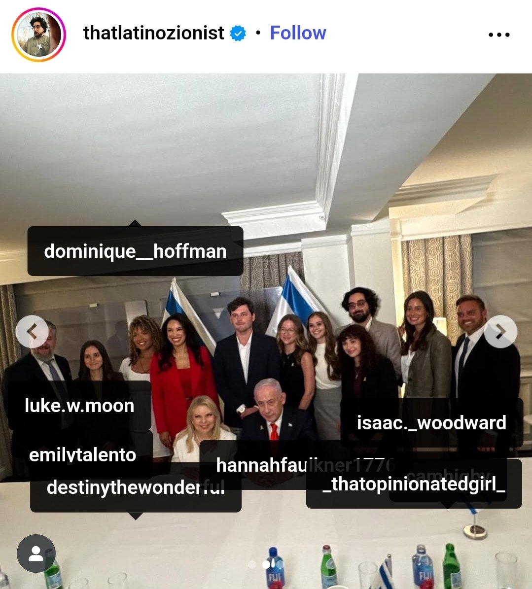 REVEALED: Netanyahu's Private Meeting of Influencers at the israeli Embassy to help "take over Tiktok and Twitter" ▪️Yair Netanyahu ▪️Emily Austin ▪️Debra Lea Schwartzben ▪️judeanceo: Shay Szabo ▪️Lizzy Savetsky ▪️ThatZionistGirl: _thatopinionatedgirl_ (name unknown) ▪️Destiny Albritton ▪️Emily Talento ▪️Isaac Woodward ▪️Cam Higby ▪️Hannah Faulkner ▪️Liv Layne ▪️Dominique Hoffman ▪️dimas_e_g: thatlatinozionist (name unknown) ▪️Luke W. Moon H/t: @GenXGirl1994