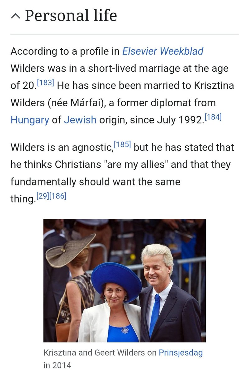 12/ Geert Wilders, prominent Dutch politician & aspirant to Prime Minister, and his wife: