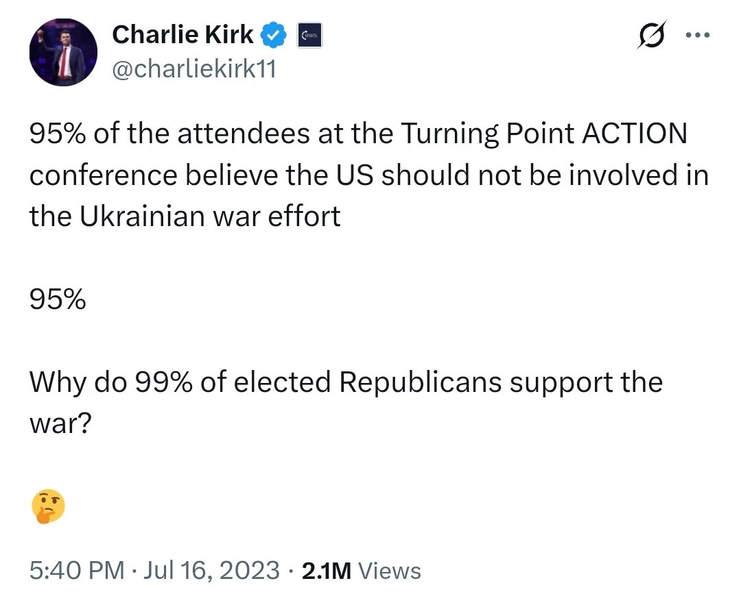 @breathe123 @FinanceWolves Yeah, if there were something hey big & dirty at TPUSA, it's reasonable to think that Charlie knew something about it. OTOH, he did want to do that DOGE thing, so maybe he didn't know know, but was starting to suspect.