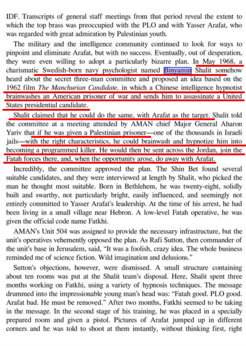 24/ In Ronen Bergman's "Rise And Kill First: The Secret History Of Israel's Targeted Assassinations," he reveals an israeli plot--hatched in May 1968--to brainwash a Palestinian prisoner and use him as a lone gunman to assassinate Yasser Arafat. That's May 1968--just days before RFK was shot by the mentally deranged (at the time) Palestinian Sirhan Sirhan in an apparent perfect setup to make israel look like a sympathetic victim. Do you see what's happening here?