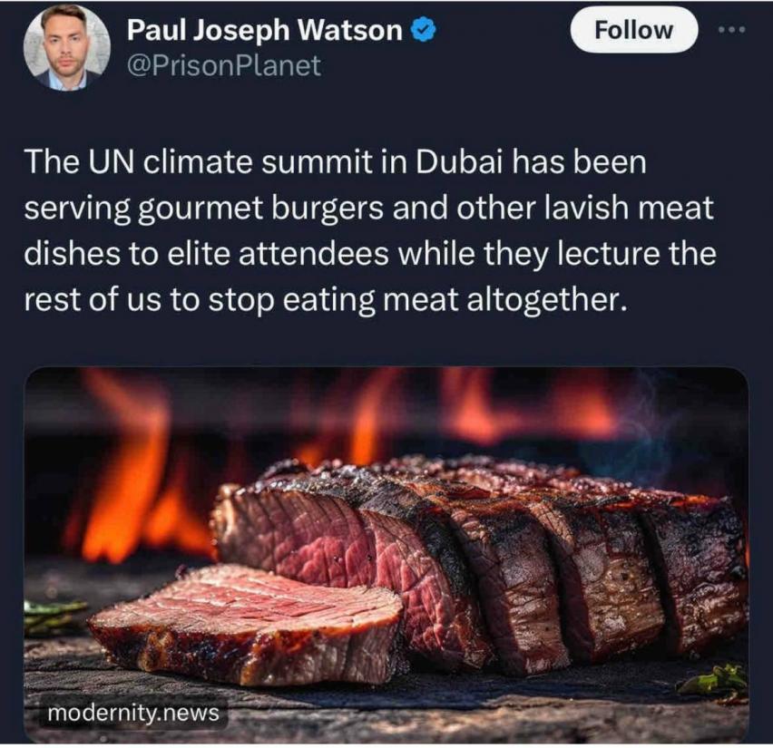 AL GORE - At COP28. MAKE NO MISTAKE - the Billionaires have no intention of doing without any luxury from prime cuts of meat to luxury private jets - They think money entitles them to subjugate you. Listen carefully. He says Democracy is under threat because citizens are no longer get the same propaganda - Gov can't control algorithms - He's a tyrant. https://t.co/9fhZPtnUY9