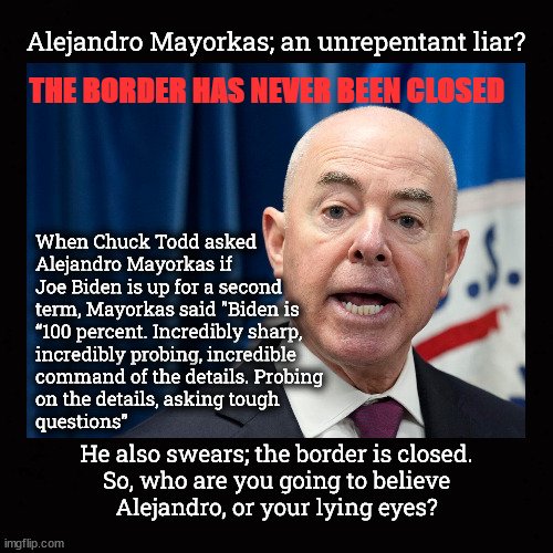 LOOKS AS THOUGH THE CONSUMMATE LIAR IS FEELING THE HEAT FROM THE DEMOCRATS - All of a sudden Mayorkas sees the need to build the wall. QUOTE: “There is presently an acute and immediate need to construct physical barriers and roads in the vicinity of the border of the United States in order to prevent unlawful entries into the United States in the project areas,” Alejandro Mayorkas, the DHS secretary, stated in the notice. What has caused this acknowledgement of fact? OH, NEVER MIND - There is an election coming up, right? But - never fear - This administration wants to flood this country with illegals to break the economy, so they can implement the NWO - Nothing will be done to stop the invasion.