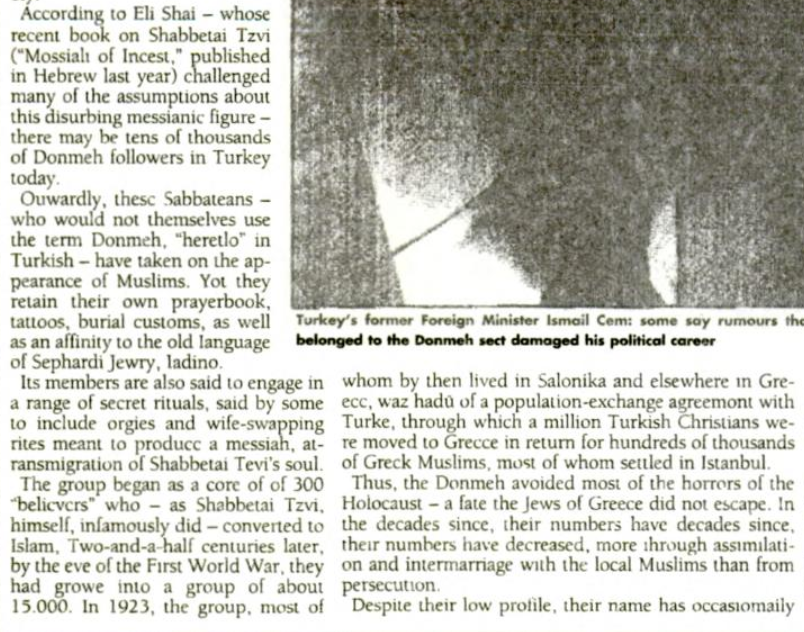 4/6 "Turkey's then Foreign Minister, Ismail Cem, was rumored to be a member of the sect (...) he was associated with the pro-Western tilt of the Turkish government (a major issue at the time, as US President George W. Bush was trying to persuade the Turks to support his policy in Iraq)."