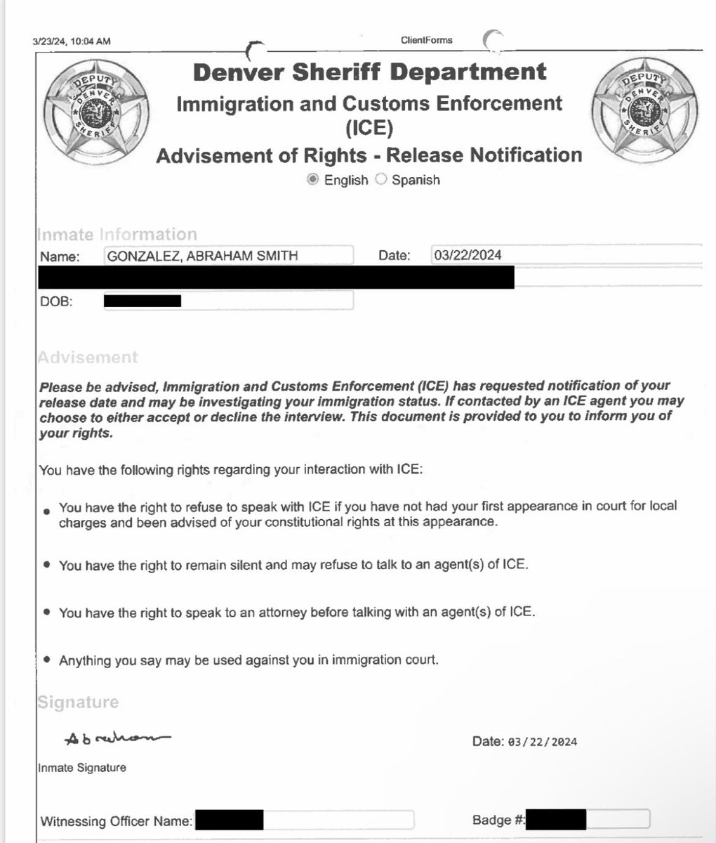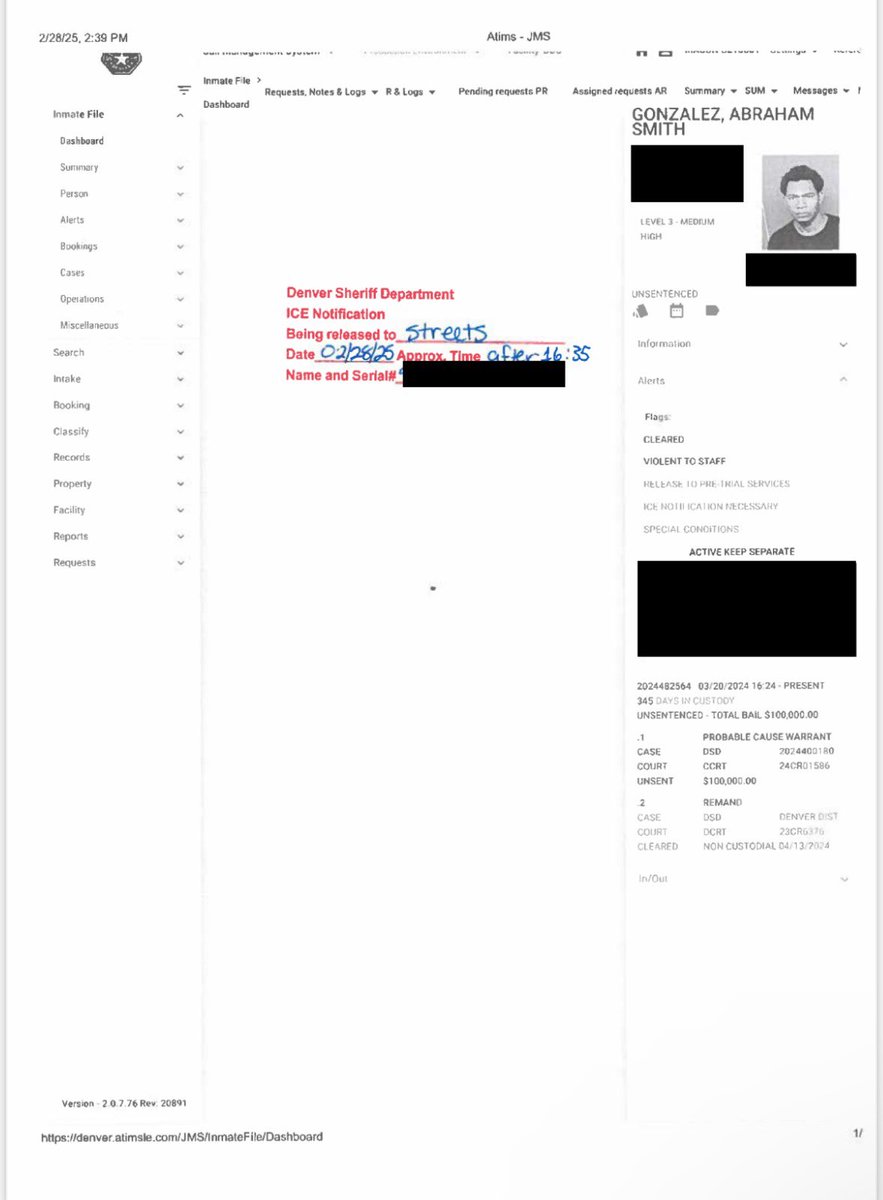 NEW: These are the release documents for the Tren de Aragua gang member that was released to a Denver jail parking lot due to sanctuary policy, leading to an ICE agent being assaulted. Notice it is stamped “release to street” by the Denver Sheriffs Dept, & they even gave the TdA gang member a heads up that ICE was asking about his release date, & notified him he has the right to refuse to speak to ICE. ICE’s detainer request is also attached. ICE asked for the TdA gang member to be handed over to their custody inside the safety of the Denver jail. Denver Sheriff’s Dept. refused, due to sanctuary policy, and he assaulted ICE when they arrested him in the jail parking lot. Congressman @Jim_Jordan and Denver Mayor Mike Johnston had an exchange about this during the @GOPoversight hearing with sanctuary city mayors. Mayor Johnston said “this is the first time I’ve been made aware of that there’s been an incident like this.”
