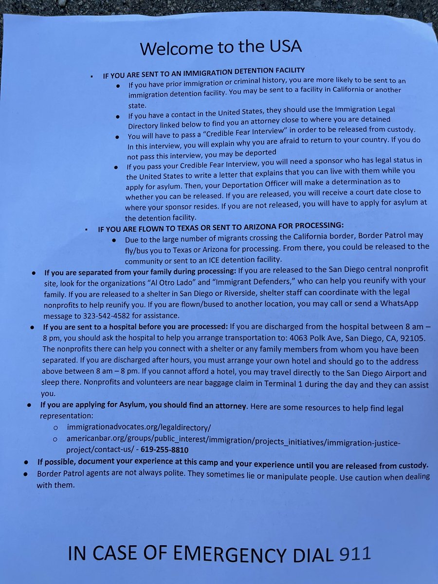 NEW: Our photographer says volunteer groups are visiting camps of illegal immigrants in the area who are waiting to be picked up by Border Patrol & are handing out these “Welcome to the USA” fliers, which advise them of next steps & claim BP agents lie & “manipulate” people. https://t.co/9YtLirb18D
