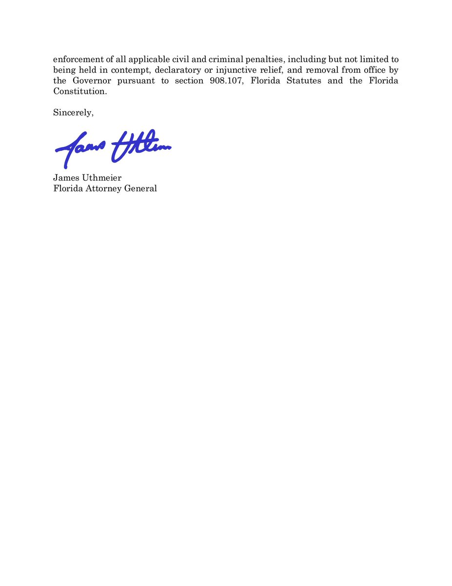NEW: Florida AG @JamesUthmeierFL has sent a letter to the Fort Myers, FL city council, after they held hands and cried while not approving an agreement for their police to cooperate with ICE. AG says this decision is a “serious and direct violation of Florida law.” Says decision makes Fort Myers a sanctuary city, which are prohibited in FL, and failure to correct the decision will result in “all applicable civil and criminal penalties, including but not limited to being held in contempt, declaratory or injunctive relief, and removal from office by the Governor pursuant to section 908.107, Florida Statutes and the Florida Constitution.”