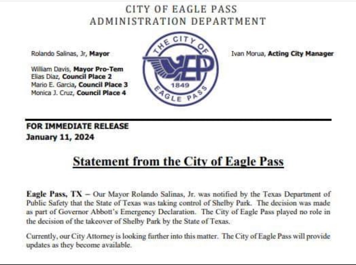 @BPUnion The city of Eagle Pass also confirms that its mayor was notified by @TxDPS that TX was taking control of Shelby Park as a result of @GovAbbott emergency declaration.