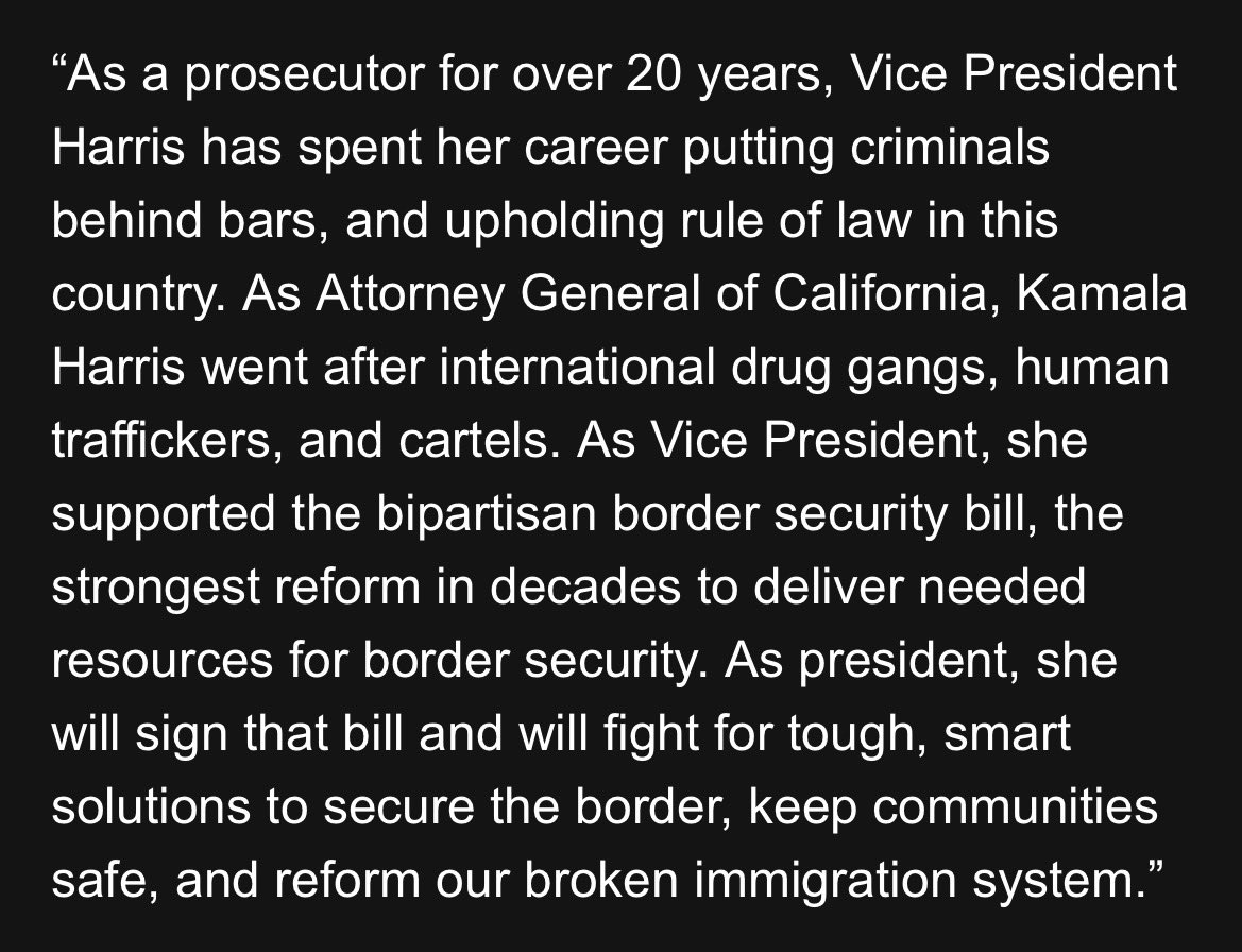 NEW: I asked VP Kamala Harris’ campaign if she will keep the Biden administration’s controversial CBP One cell phone app & CHNV migrant flights mass parole program if she wins the election. The campaign provided me a statement that did not answer those questions. The campaign said instead that she supports the bipartisan border bill, and would sign it. That bill would have immediately ended the use of the CBP One cell phone app for paroling migrants into the U.S., but it would have kept the CHNV migrant flights parole program in place. Both programs combined have allowed over 1.3 million migrants to enter the U.S. lawfully since the Biden admin started them less than two years ago in late 2022 & early 2023. 800,000+ via the CBP One App. 530,000 via CHNV migrant flights. Again, these numbers are not counted in Border Patrol data as they are not illegal crossings and they never encounter Border Patrol. Statement below from Harris campaign spokesperson Mia Ehrenberg.