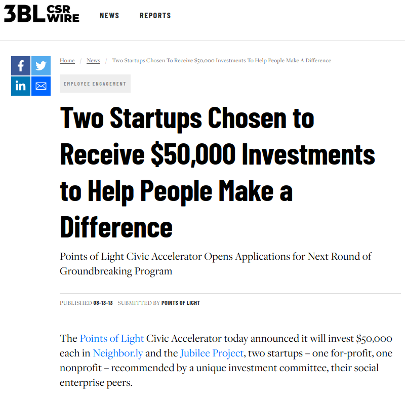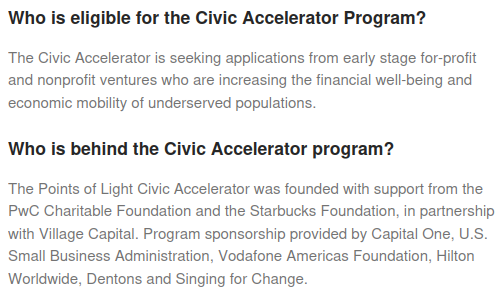 Of the funding Jubilee would receive this $50k was hardly anything And Civic Accelerator isn't tied to anyone too special, it was basically a joint effort between PwC's and Starbucks' Charitable Funds ...but the next round of funding gets much more interesting