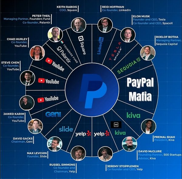 The PayPal mafia is a small group of men that dominate the tech & startup world And anyone wanting a company in Silicon Valley invariably needs to be in one of their good graces These men also have strong ties to government agencies like the CIA and Mossad (especially Thiel)