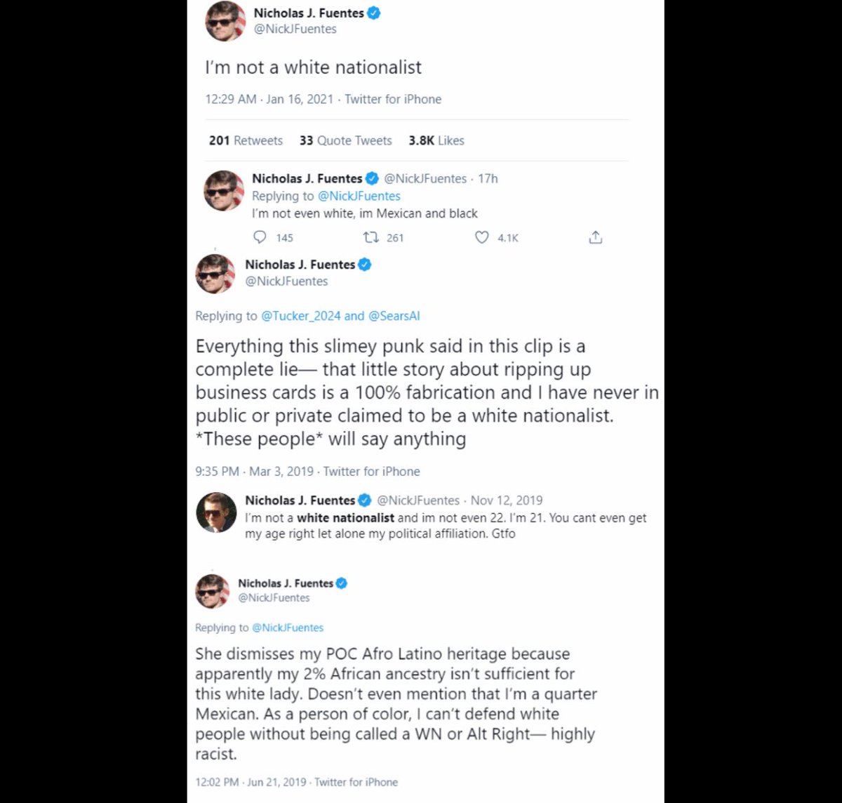 There's a simple reason Nick Fuentes can't represent the American far right: He's not a White nationalist. Sure, at times he's alluded to being a White nationalist but he has a long history of speaking against it as well (see pic). And don't you dare ask Nick and the Groypers for a formal mission statement like Patriot Front or the NSDAP put out. They'll report your account in to oblivion. Trust me, I know. The Groypers have come after me multiple times for asking. I also expect to be reported by them after this post. So whether or not Nick is controlled opposition doesn't really matter. He has a totally different end-state goal than us White nationalists. And the worst part is he won't even formally define what that goal is outside allusions to it in thousands of hours of video. Neither Candace, Nick, or Tucker represent an ideology I want to be a part of. I refuse to follow any of them, controlled opposition or not.