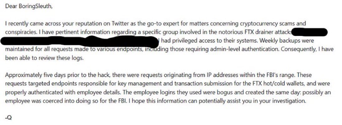 🚨Call for Action + FTX Drainer’s curious similarities and connections to Mt. Gox and Silk Road 1. FTX funds that were drained in 2022, by hackers while the exchange was being shut down, were moved thru Binance’s Deposit Funder address. 2. Inside Source claims that the FTX Drainer had inside access to FTX Admin accounts, and that the IP address’ came from within the FBI’s range. 3. Tigran Gambaryan, who is currently detained by Nigerians Government, became the financial crime compliance head for Binance in 2021. Prior to this, Gambaryan was a Special Agent who led the investigations in Mt. Gox and Silk Road, along with several other massive Crypto exploits. Gambaryan was closely involved in Chainanalysis in its early days and other companies like TRMLabs. 4. Special agents in Mt Gox and Silk Road, including Tigran, and Agents Bridges and Force, had complete inside access to take over any account and message, send funds, drain it, etc. Bridges and Force were arrested, served 6 years in Prison, and were released in 2020. 5. I had a Drive-by on my house in Feb 2022 after releasing the on-chain evidence showing FTXs stolen funds moving thru what we now believe to be FBI connected wallets, and with a portion eventually being laundered thru Binance. 6. FBI linked account? sent me on-chain message stating they were Watching me. Then, the day after a car tried to run me over during a Marathon, that same account sent me a message stating: “You have to get lucky every time, we only have to get lucky once”. These FBI connected accounts could be rogue Agents, but the FBIs failure to act on these threats on me, and the prosecution of those that moved the crypto during the exploit is highly concerning in and of itself. Perhaps the Nigerian government knows more about Gambaryan than what has been released publicly. I do not wish to call out Intelligence Agencies but I am forced to protect myself, when my life is at risk. I’m calling for an intense investigation into the Cyber Crime units of American Agencies for their gross misconduct and negligence by those from within, and the intelligence platforms they are currently using.