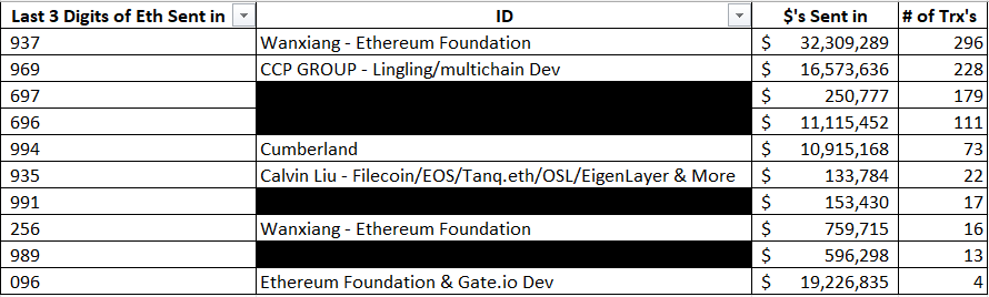 Was #Filecoin a FRAUD Orchestrated by the Ethereum Foundation, Wanxiang, Prometheum, and other CCP entities? READ TO THE END!! When you sleuth, you need to remain open to all possibilities. Within a transaction, data can be derived from just about the entirety of it. Sometimes its useless, other times its a Gold Mine. When I sleuthed the #Filecoin ICO, I found something interesting, which I don't see too often. I was mapping out Wallets, starting with the wallet that sent the most ETH sent to #Filecoin, and working my way down until I was deep enough. I began to notice trends, in both how the wallets were funded, who those wallets interacted with and in what patterns, as well as who was the owner of the wallets. One alarming thing that began to stick out to me was the number of wallets that would send ETH with a very long decimal number. As a real example in this exact case: There were a total of 1,255 inbound Transactions. 296 of the 1,255 transactions had ETH sent in QTY's that ended in xxx.xxx937 Eth 228 of the 1,255 transactions had ETH sent in QTY's that ended in xxx.xxx967 Eth 179 ended in xxx.xxx697 Eth 111 ended in xxx.xxx696 Eth 106 of the transactions had a unique last 3 digits of the QTY of ETH sent in. You can see below in the Graph, a breakdown of how each number was allocated. It clearly shows an attempt to do just as I describe above. You see, when you want to make it look like a bunch of people are "Apeing" in to your token sale, that you and your handful of VC's are going to dump on the pleb's, you have to use some sort of code that helps group together who sent what. Unfortunately for them, for every brilliant mind with little ethics that exists in the world, there are several others who also have brilliant minds, but also ethics, and use it towards good, and not fraud. When we group these wallets together, and we cross-check the Truth Labs Database of Networks and Wallets, we can begin to assign ownership to these groups of otherwise, difficult wallets to trace. What we are looking at now, is a very clear picture of who owns what. Who was involved in the Ponzi, and on what level. We can even cross check News Articles and begin to assign VC's to these groups, and really build out a network. While, I am not prepared to show you the final results and conclusion, I did want to share what your friends at Wanxiang, @VitalikButerin @ethereum @CumberlandSays @PrometheumInc had been up to. There of course is much more to this story, to be shared at a later date. Always stay curious my Friends.
