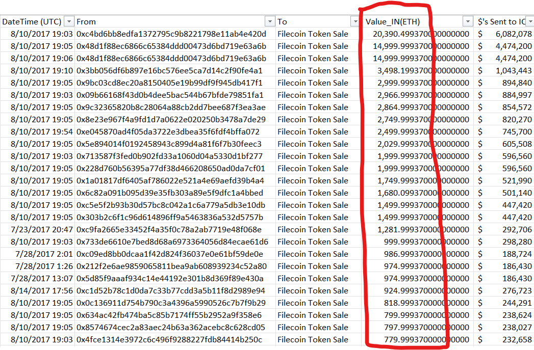 Don't worry, I will be wrapping up Part 2 of Filcoin's fraudulent ICO. Do you want to know which wallets were the only fortunate wallets to not have their transactions fail during the first 80 minutes of the Filecoin ICO, prior to them delaying the ICO for 2 days due to "Insane Demand"? I will show that in tandem, with the Ethereum Foundation, Wanxiang, Cumberland, and a handful of others manipulated the public token sale of Filcoin. It will prove that predominately ONLY THEIR own 100's of unique wallets were the ones to buy in the first 80 minutes before postponing sale due to demand. The public got Zero in the first 80 minutes of a rising price ICO Sale. I will also outline how then, the ICO team positioned this delay as a crisis due to overwhelming demand, and then broke many of their Public outlined Token Sale guidlines and legal rules. I will show how they changed the rules, and price after the fact to favor Vitalik, the Ethereum Foundation, Wanxiang, Cumberland, and the others and stated it was due to them listening to the community. Plus, of course, I will show far more on-chain evidence.