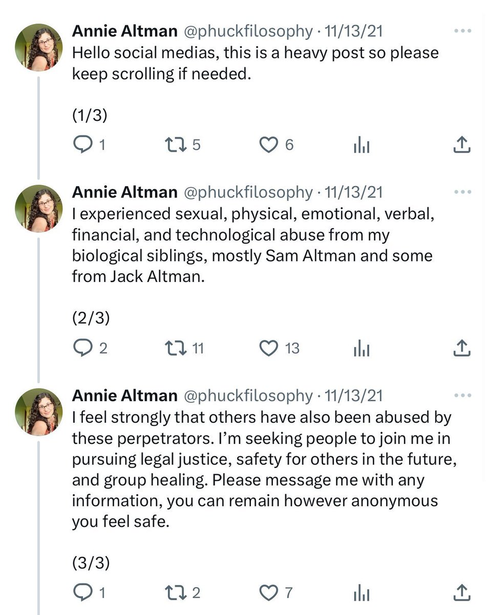 2 Years ago, and 1 month, Annie Altman told us who Sam really was. Who wants a Predator to be in the most powerful position in AI?