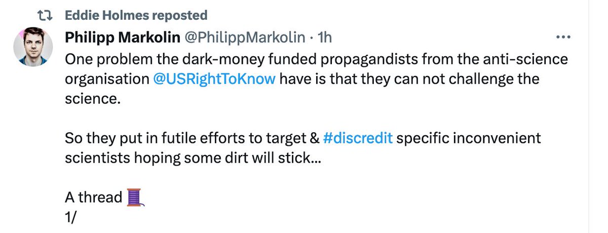 Eddie Holmes chooses to amplify disinformation instead of face accountability for lying to the global public. Holmes is a disgrace to his profession. #RetractProximalOrigins https://t.co/eFkTlXTL6k