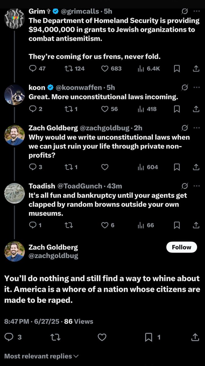 FRENS —> follow this FREN @dznutzurface He’s Kryptonite to these traitorous elitist jews ruining our country and has been exposing the unfathomable extent of their crimes. Naming names, showing receipts. He’s now on his 12th (?) account. His Substack —> highly recommended. His loyal archivist @KettyLuvz 🤍 https://open.substack.com/pub/decentfijc?utm_source=share&utm_medium=android&r=5czpwi