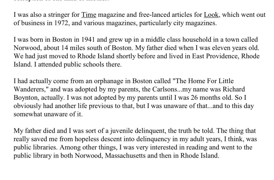 @BasedSamParker Check this out, Richard Carlson wasn’t born with that name, he was Richard Boynton from Norwood MA and then adopted at 26 months old by the Carlsons from an orphanage called “The Home for Little Wanderers.” https://t.co/jNIoBhNTYf