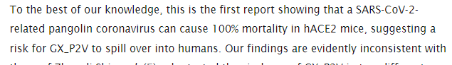 Their new bioweapon - GX_P2V - is a lab generated Pangolin coronavirus that has resulted in a 100% fatality rate in humanized mice. Without concerning ourselves with the ethics of testing on humanized mice, its worth explaining what that is.