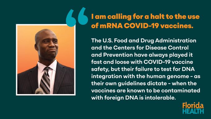 To Dr. Ladapo's statement: "The FDA's response does not provide data or evidence that the DNA Integration assessments they recommend themselves have been performed. DNA integration poses a unique and elevated risk to human health and to the integrity of the human genome, including the risk that DNA integrated into sperm or egg gametes could be passed onto offspring of mRNA COVID-19 vaccine recipients..." Dr. Ladapo has rightly called out the FDA for rushing the vaccine out without providing evidence - if they even have any - and is refusing to subject patients to the great unknown, specifically when it involves DNA integration.