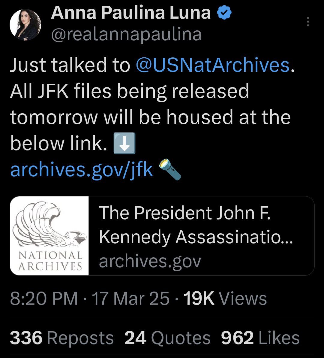 💥Here you go folks, save the link for the release Link to JFK Files 📁 https://www.archives.gov/research/jfk @CaptKylePatriots