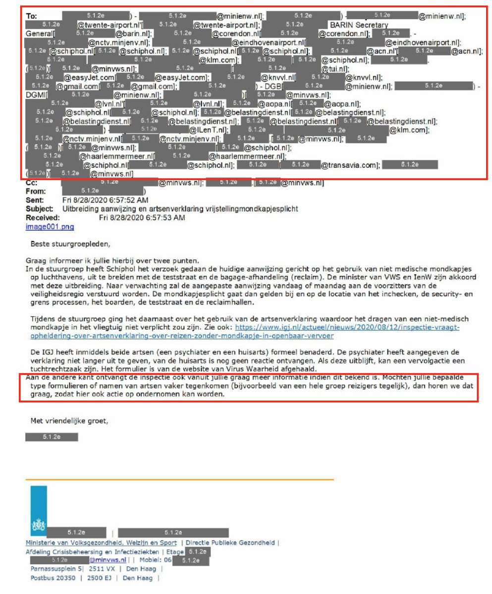 Artsen die een artsenverklaring afgaven voor ontheffing voor het dragen van een niet werkend mondkapje, werden ook nagejaagd door de IGJ. In een mail aan reisorganisaties, luchtvaartmaatschappijen en grensbewakers werd gevraagd om uit te kijken naar namen van artsen die zij regelmatig terug zagen komen op dergelijke formulieren. Die artsen kon de IGJ dan aanpakken.