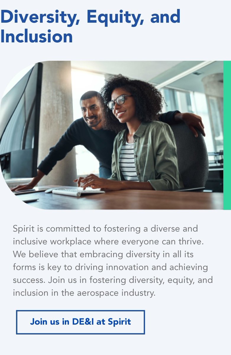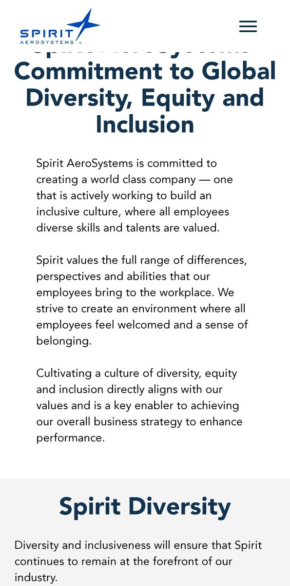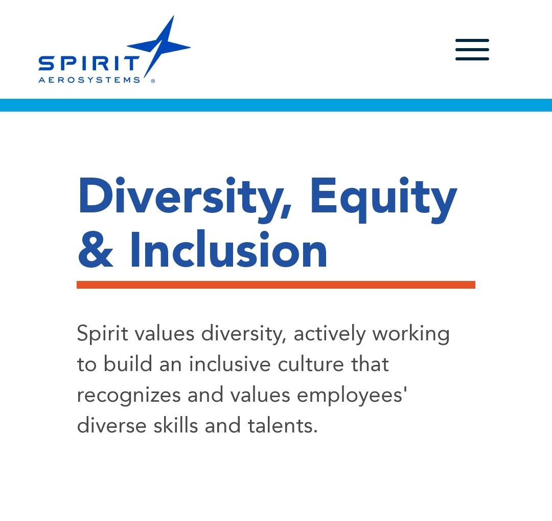 "Diversity and inclusiveness will ensure that Spirit continues to remain at the forefront of our industry." Maybe work on the door plugs, tho. https://careers.spiritaero.com/dei