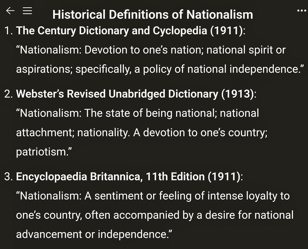 @anukasan1977 @ConceptualJames Not to go full Kant, but those shifting definitions dictate what can or cannot be thought and discussed. In this case, "nationalism" was redefined to achieve the end-goal of sowing division. Right or wrong def aside, James uses that def to expose how it was used.