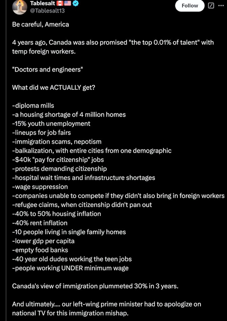 Almost none of those calling for immigration restrictions today are the “ethnonationalist” or “Christian nationalist” scapegoats you’re strawmanning. Sure, they exist as statistically insignificant fringes. And so? ¯\_(ツ)_/¯ Nearly all are just patriots who want to reforge the sort of united ethnos they know we had & can easily have again, while raising wages & living standards for citizens—and their desire to strictly limit immigration has broad democratic support.